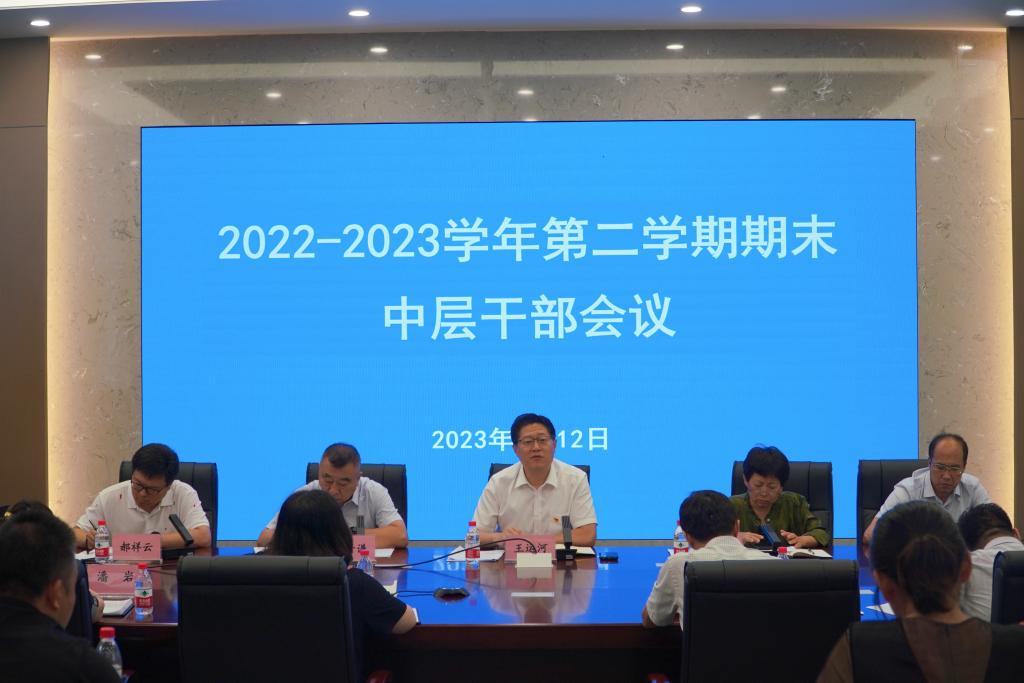 7月12日,学院在主楼会议室召开中层干部会议,回顾上半年各项工作进展情况,部署暑期和下半年工作。学院领导班子成员及全体中层干部参会,党委书记王运河主持会议。