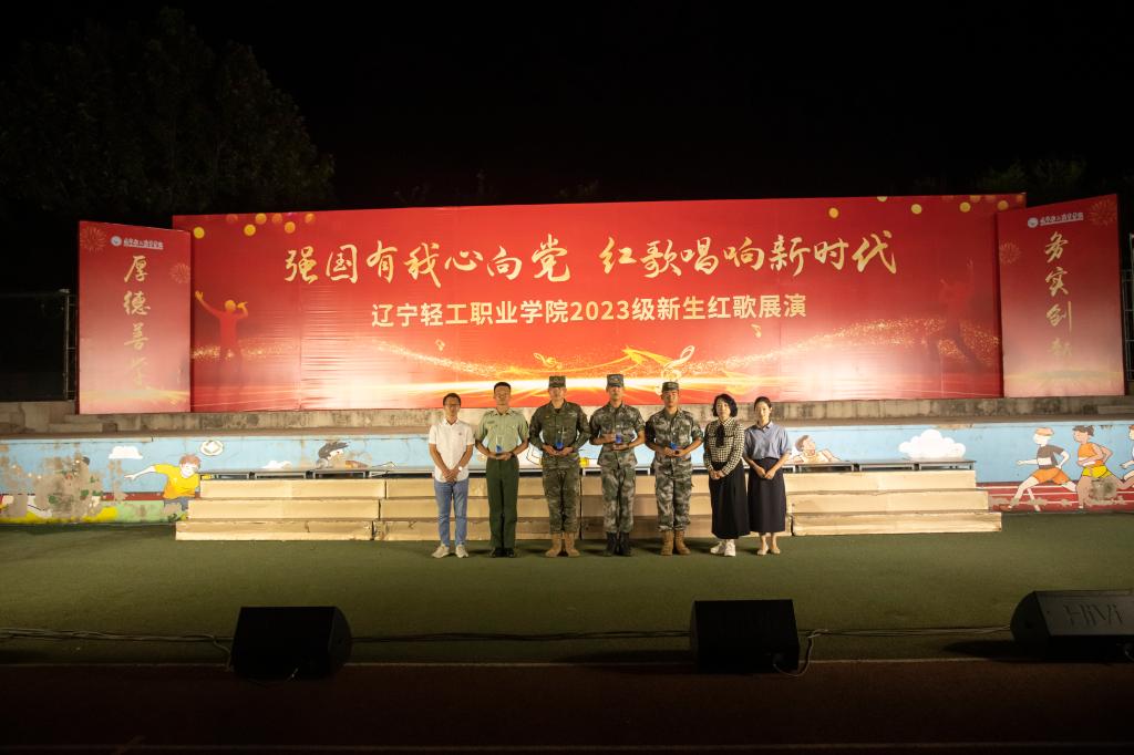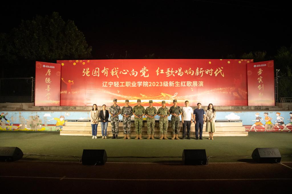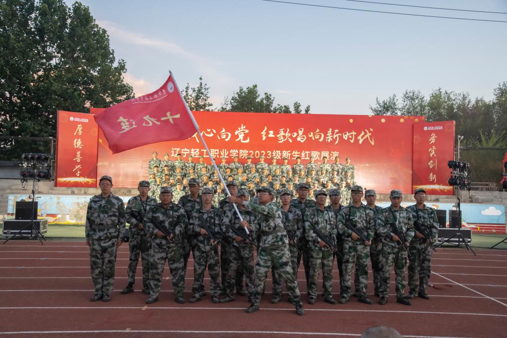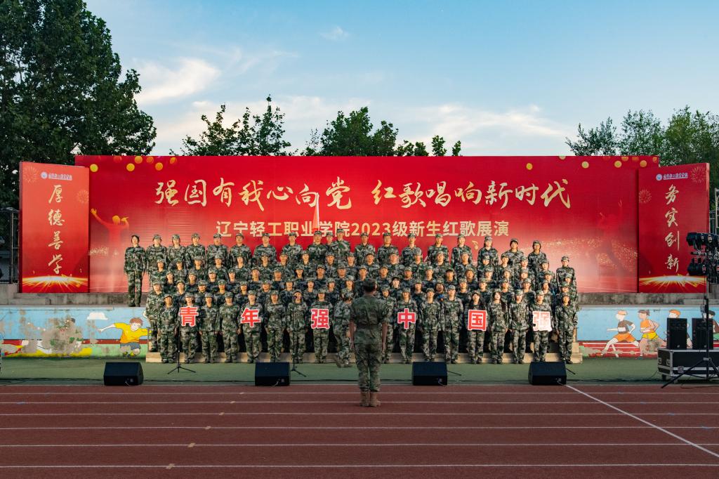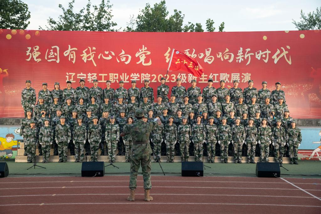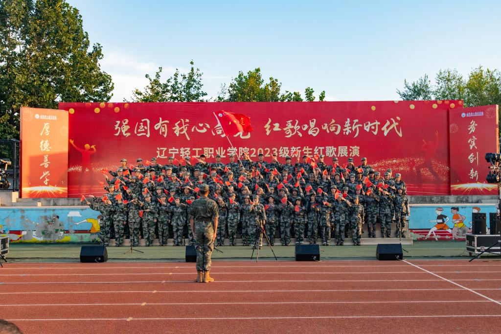 红歌展演在全体承训教官慷慨激昂的《有我在》歌声中拉开帷幕,来自六个营的三十三个连队分别选取了《没有共产党就没有新中国》、《保卫黄河》、《我们走在大路上》、《打靶归来》、《当那一天来临》、《假如战争今天爆发》、《强军战歌》、《祖国不会忘记》等红色歌曲参加展演。参演新生着装整齐、精神饱满,嘹亮的歌声饱含着对祖国的无限热爱和对党的无限忠诚,唱响了辽轻学子传承红色基因的主旋律,唱出了新时代青年的最强音,抒发了华夏儿女血脉共流的民族情怀。