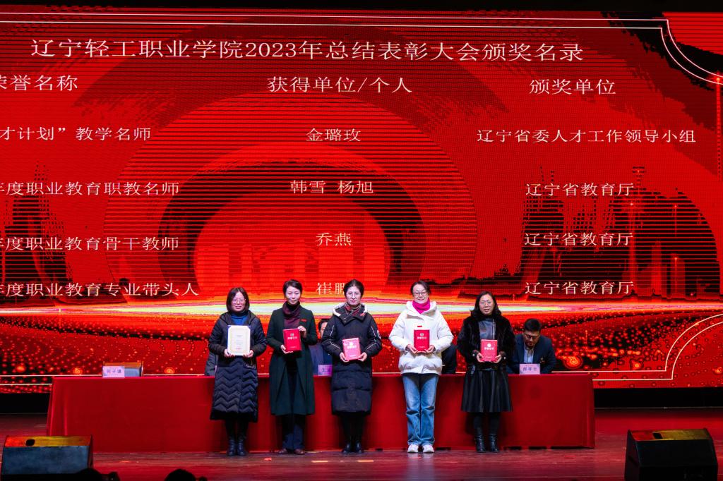 段树斌宣读《辽宁轻工职业学院2023年总结表彰荣获国家、辽宁省荣誉的先进集体和先进个人名单》,他提出,全体师生要向先进学习,向榜样看齐,发扬成绩、再接再厉,不负时代重托、不负青春韶华,践行“自立自强 砺能笃行”的校训精神,继续努力扎实工作,为学院发展再立新功,在实现第二个百年奋斗目标的新征程中谱写属于辽轻人的绚烂篇章。