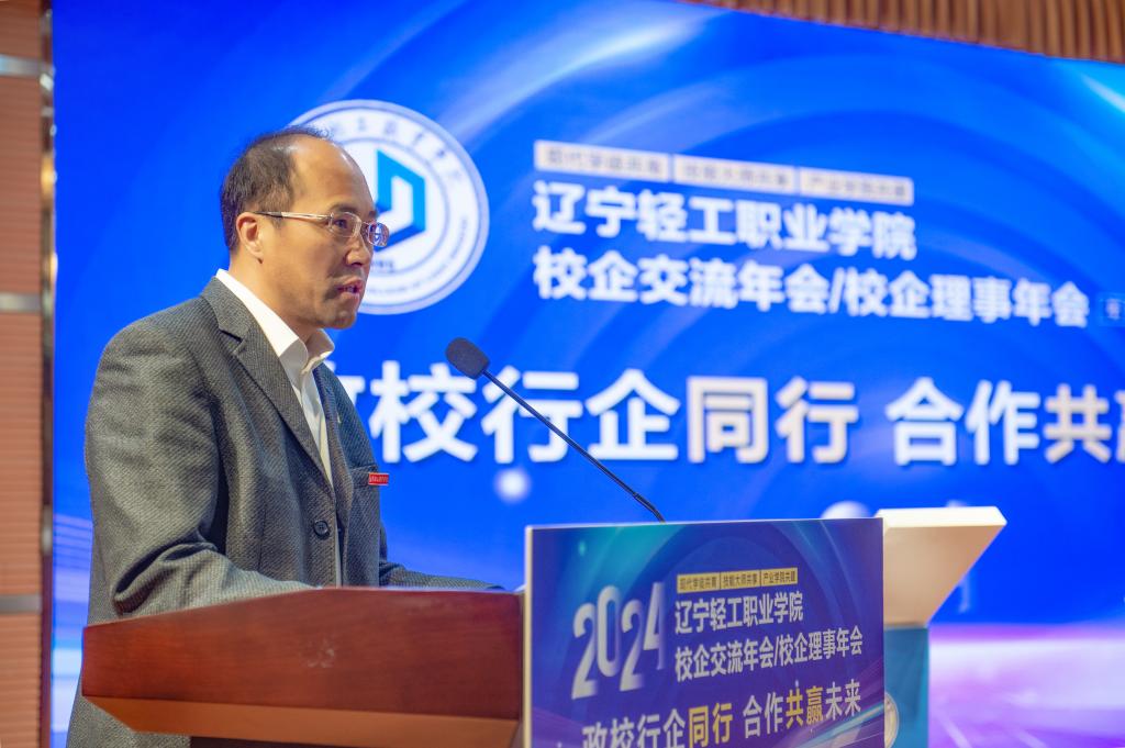 王运河向长期以来关心、支持和参与辽宁轻工职业学院建设发展的各级政府领导、企业家及广大校友表示感谢,向来宾介绍了学院近年来校企合作工作取得的丰硕成果。他表示,辽宁轻工职业学院始终坚持以立德树人为根本任务,致力于培养高技能应用型人才,关注行业发展趋势,紧跟企业人才需求实际,实行开放式办学,推进产学研深度融合,不断加强与企业、行业的交流合作,校企合作取得了丰硕成果。他提出,此次“政校行企同行 合作共赢未来”校企交流年会是校企双方的又一次亲密接触,将进一步推动学院与政府、行业、企业合作层次、合作范围,同时也是学院实施开放式办学的又一次新尝试、新跨越。全体辽轻人将勠力同心,为校企合作之路开创新的未来。