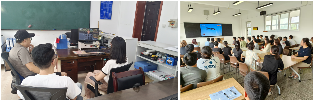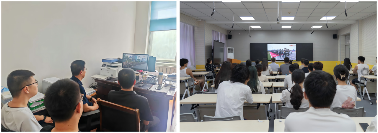 上午9时,大会在雄壮的国歌声中正式拉开帷幕。收看现场气氛庄严肃穆,师生全神贯注,认真聆听习近平总书记重要讲话,共同回顾中国人民抗日战争的光辉历史,深刻感悟伟大抗战精神的时代意义。阅兵仪式上,当整齐划一的受阅方阵迈着铿锵步伐通过广场,当代表我国国防现代化水平的先进装备威武亮相,师生们深切感受到祖国的日益强大,民族自豪感油然而生。许多师生眼含热泪,为革命先辈的英勇无畏而动容,为祖国国防实力的飞速发展而骄傲,为国家历经磨难走向伟大复兴的辉煌而自豪。