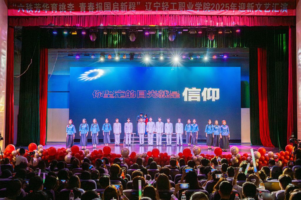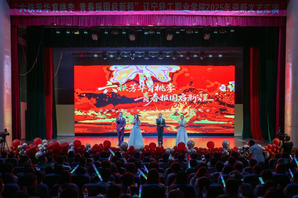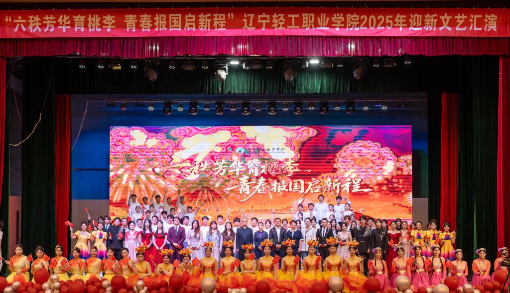 七十六载山河锦绣,一甲子风华正茂。当国庆的喜悦与学府的芳华交汇,9月28日下午,辽宁轻工职业学院“六秩芳华育桃李 青春报国启新程”2025年迎新文艺汇演在热烈昂扬的氛围中盛大启幕!这场青春盛典,通过线上线下相结合的方式,吸引了5500余名师生共同见证。学院党委书记石竹青、党委副书记郝祥云、纪委书记鲁凤宇、副院长刘秀英与2025级新同学一同观看演出,在精彩纷呈的节目中厚植家国情怀,砥砺初心使命,为新学期校园文化生活描绘了浓墨重彩的开篇。