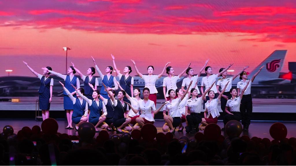 “梦想启航·共创未来”篇章洋溢着青春活力与创新气息,为整场汇演注入鲜活力量。航空运输学院的礼仪操表演《领航·礼序》动作规范、气质优雅,展现了学院职业素养培育方面的显著成效;歌曲串烧《方的言》《天天》《是你》《闪耀》风格多元、情感真挚,引发现场观众的强烈共鸣;舞蹈串烧中,啦啦操、街舞、爵士舞轮番登场,活力四射的表演将现场气氛推向高潮;辽轻合唱团以一首深情而充满力量的《值得》为整场汇演画上圆满句号,歌声中寄托了对未来的无限憧憬与坚定信念。