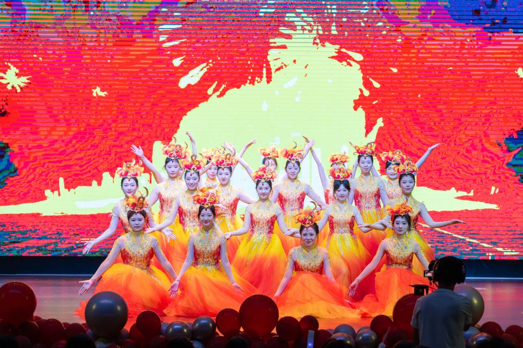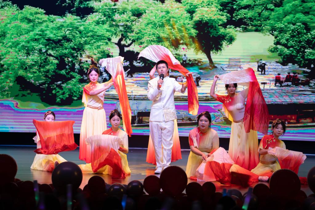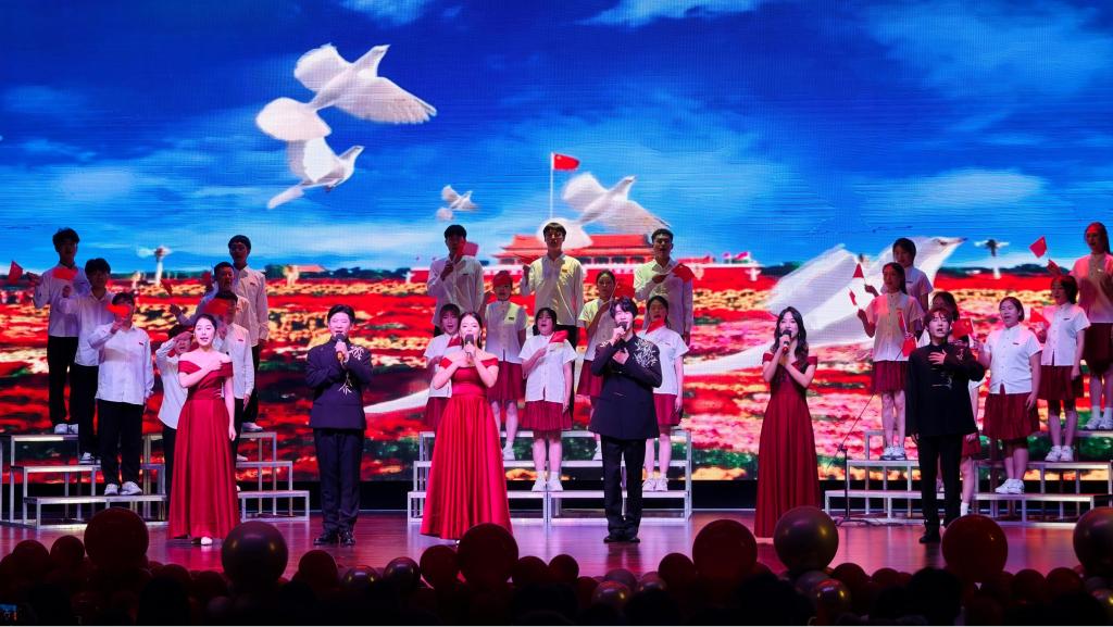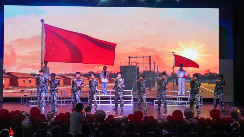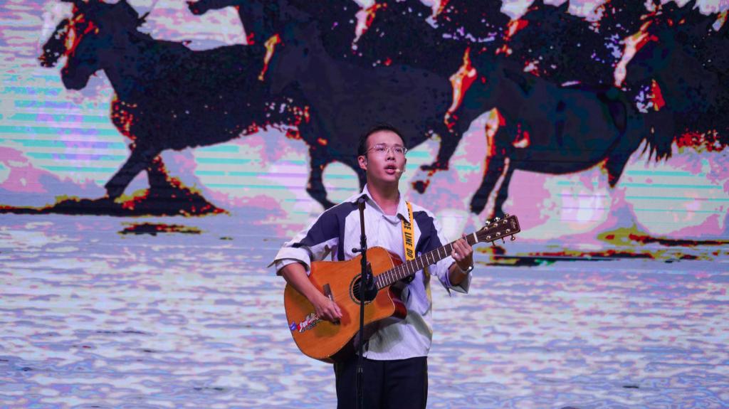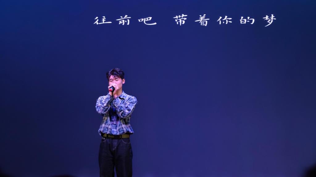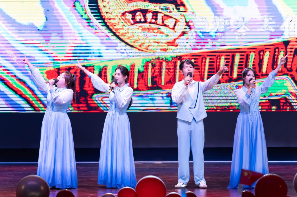“青春飞扬·矢志报国”篇章聚焦青年担当,将家国情怀融入每一个节目。歌曲《奋斗的岁月》《铭记》唱出了新时代青年的理想与坚守;情景朗诵《这盛世如你所愿》与歌曲《如愿》深情交融,表达了对革命先辈的深切缅怀和对祖国繁荣强盛的真挚礼赞;民族歌舞串烧《巴郎仔》《大山》《骏马谣》以浓郁的民族风情、昂扬的节奏,展现中华文化的多元魅力与强大凝聚力;歌伴舞《新征程》以恢宏的旋律、磅礴的舞姿,进一步激励现场学子以青春之姿勇担时代使命,在强国建设的征程中奋勇向前。