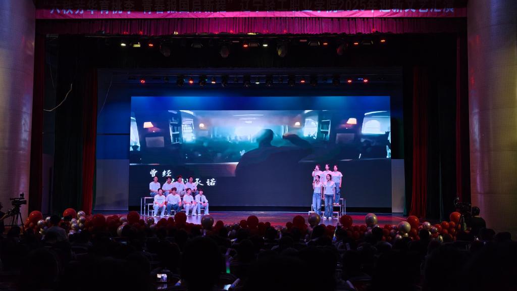 演出在航空运输学院带来的开场舞《飞向春天》中拉开帷幕。舞者们轻盈灵动的舞姿,搭配充满蓬勃朝气的舞台呈现,不仅瞬间点燃全场热情,更寓意着2025级新生将在辽宁轻工职业学院的沃土上扎根生长,向着希望与未来奋力前行。整场演出紧扣“初心如磐·礼赞华诞”“青春飞扬·矢志报国”“梦想启航·共创未来”三大篇章,通过丰富多元的艺术形式,生动展现学院在文化育人、实践育人领域的探索成果,也让思政教育与专业特色、艺术实践实现深度融合。
