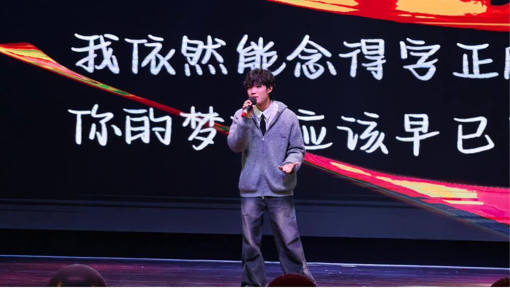 在“初心如磐·礼赞华诞”篇章中,歌曲联唱《光阴的故事》《同桌的你》以熟悉的旋律带领观众重温校园记忆,唤起师生对青春岁月的共鸣;情景朗诵《辽轻之光 六秩华章》则以铿锵有力的语调,回顾学院六十载办学历程中坚守育人初心、培育万千桃李的辉煌成就;《无名的人》《有我》传递出平凡人坚守梦想、青年一代勇担使命的精神力量;纺织服装学院精心打造的时装走秀《纺服风华 织庆华诞》,以专业特色与艺术表达相结合的方式,展现了学院学子扎实的技能功底与飞扬的青春风采。