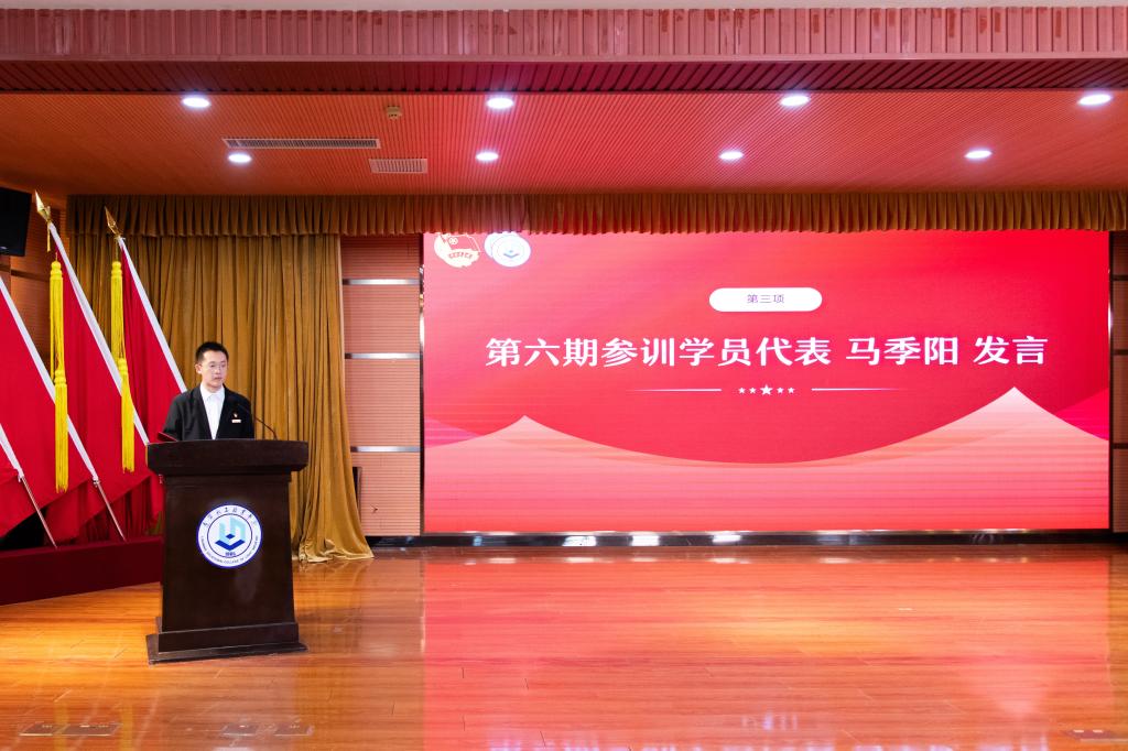 在结业仪式环节,郝祥云宣读了《关于准予辽宁轻工职业学院“青年马克思主义者培养工程”第六期参训学员结业的决定》。与会校领导为第六期结业学员代表颁发结业证书。第六期学员代表、信息工程学院马季阳同学分享了在“青马工程”中的收获与感悟,表达了将牢记初心使命、持续砥砺奋进、主动服务社会的坚定决心。