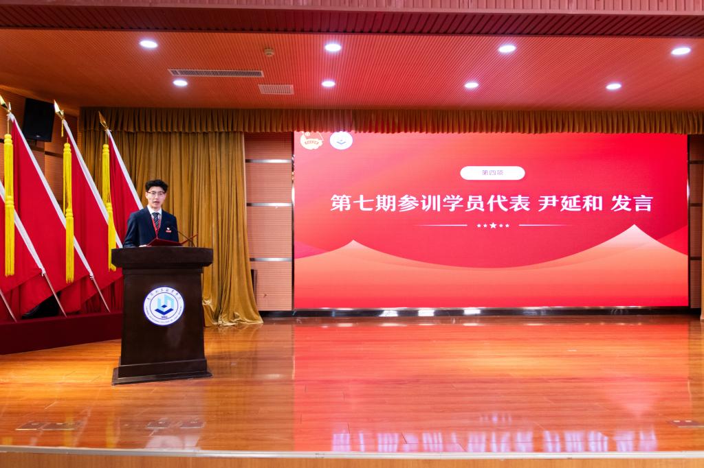 李芷逸宣读第七期培训有关规定,明确了学习纪律与要求。新学员代表、航空运输学院尹延和同学作表态发言,承诺将珍惜机会、严守纪律、锤炼自我。