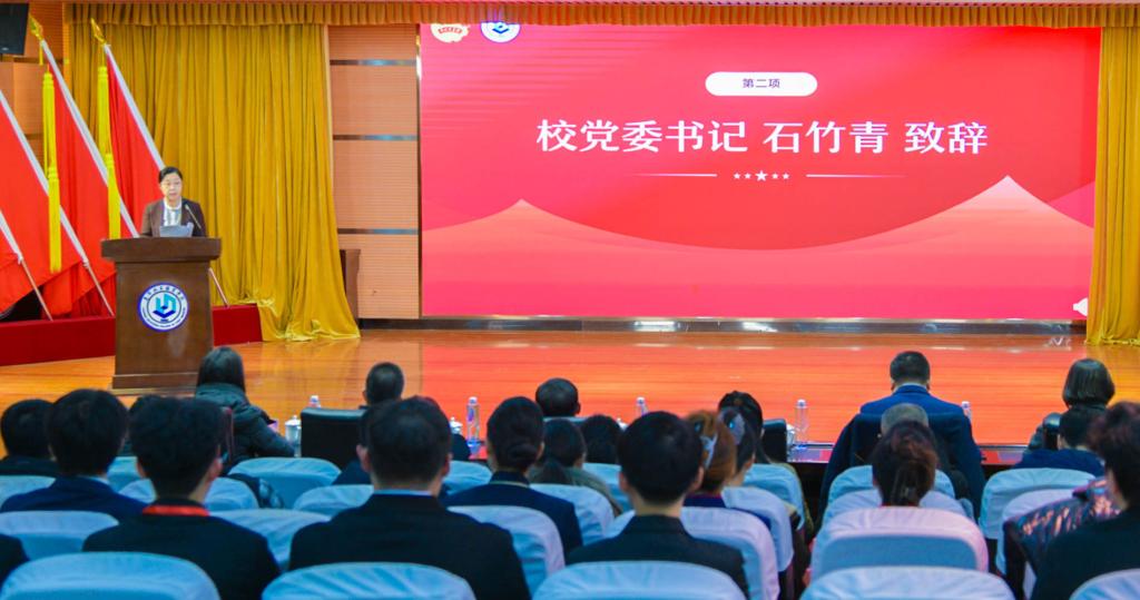 伴随庄严的国歌,仪式正式拉开帷幕。石竹青向圆满完成培养任务的第六期学员表示热烈祝贺,鼓励他们将所学所获转化为砥砺前行的不竭动力,在今后的学习工作中持续发挥青年骨干的先锋模范作用;同时勉励第七期新学员以学长为榜样,深耕理论学习、积极投身实践,努力成长为马克思主义的坚定信仰者、忠实实践者和积极传播者。她指出,“青马工程”是提升青年骨干政治理论水平、凝聚青年力量、提升青年综合素养的重要平台,是学校为党育人、为国育才的重要引擎之一。她向全体学员提出三点希望:一要博学深悟,筑牢信仰根基。在深学细研中感悟真理力量,强化思想认同,让理想信念根植于心;二要知行合一,砥砺奋斗意志。将学习成果运用于社会实践、志愿服务、科创竞赛中,锤炼出过硬本领和顽强意志;三要播撒火种,勇担时代责任。主动做好党的创新理论的“青年化”阐释者,带动更多同学砥砺前行。