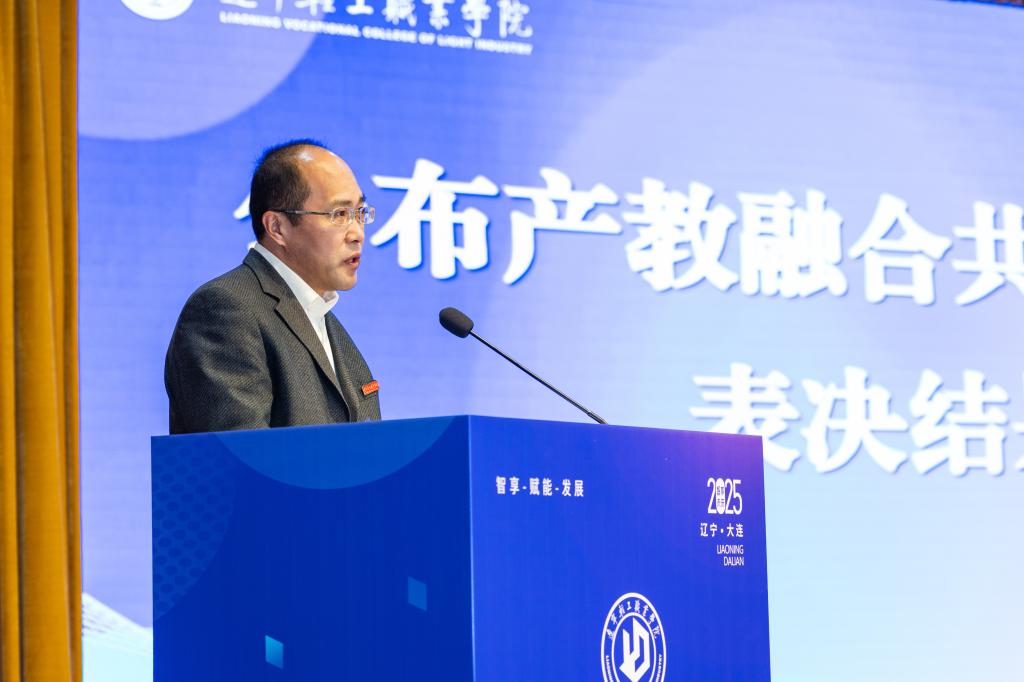 大杨集团有限责任公司总经理胡冬梅以“以品牌促振兴 以创新谋发展 打造新时代辽宁振兴时尚名片”为题,分享了龙头企业在产教融合助力产业品牌化、高端化发展中的实践路径与深切期待;大连职业技术学院副校长宋丽丽作“产教深度融合 构筑职业教育新增长极”专题报告,从职业教育改革以及行业发展视角阐述了深化产教融合对提升职业教育适应性与吸引力的核心价值。