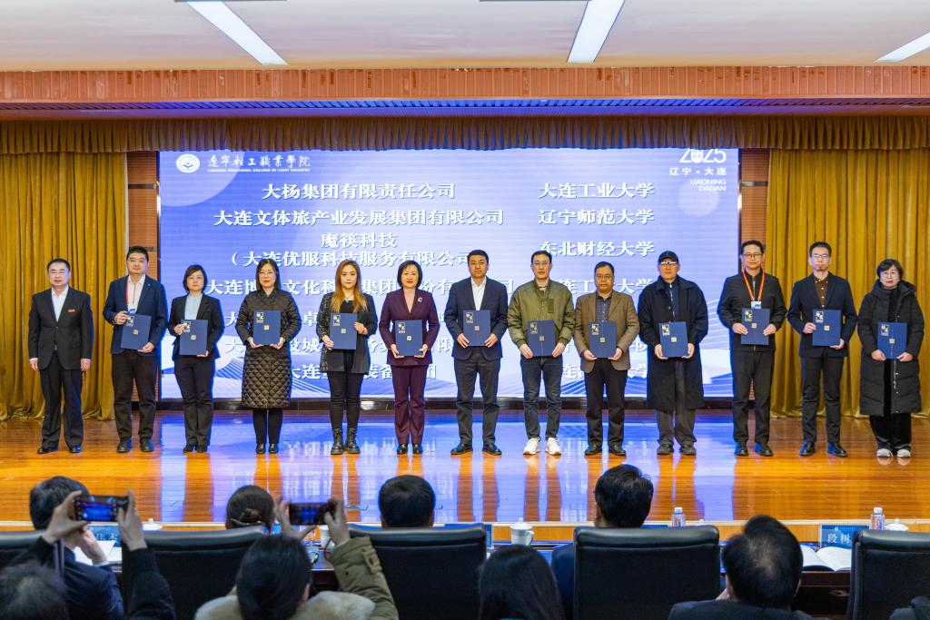段树斌为当选共同体理事长单位代表颁授证书,并代表学院与大杨集团有限责任公司等21家行业领军及骨干企业集中签订合作协议,进一步夯实校企合作根基。