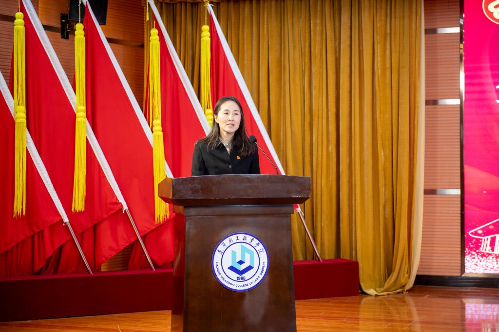 王晓红代表区妇联向大会的召开致以祝贺,并对学校今后的妇联工作提出三点希望:一是筑牢思想之基,在跟党奋进中锚定振兴方向;二是聚焦中心大局,在振兴发展中彰显巾帼作为;三是坚守为民初心,在服务民生中传递巾帼温暖。金普新区妇联将一如既往重视关心支持学校妇女工作,为广大女性师生施展才华、成就梦想搭建更广阔的平台,为“十五五”顺利开局贡献巾帼智慧和力量。