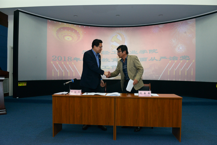 党委书记王运河与机电工程系负责人签署《2018年度党风政风廉政建设责任状》
