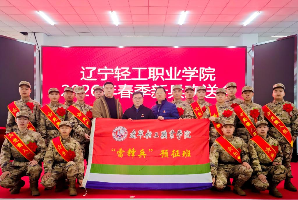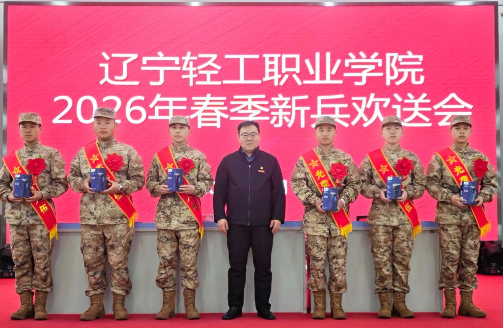 轻工学子披戎装,强国强军勇担当。3月13日上午,学校在金普新区役前教育训练基地举行2026年春季新兵欢送会,为即将踏上军旅征程的43名学子壮行。校党委武装部(学生处)部长(处长)刘启国出席会议并讲话,征兵工作站老师吕永龙、汤传辉,内派教师刘佳以及全体预定新兵参加欢送会。