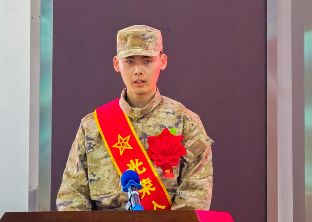 艺术设计学院建筑室内设计专业毕业班学生代长梁代表全体新兵发言。他表达了对母校悉心培养的感激之情,讲述了自己立志参军、投身国防的初心与梦想,并承诺将苦练本领,绝不辜负家长和母校的殷切期望,以实际行动为校争光、为国效力。
