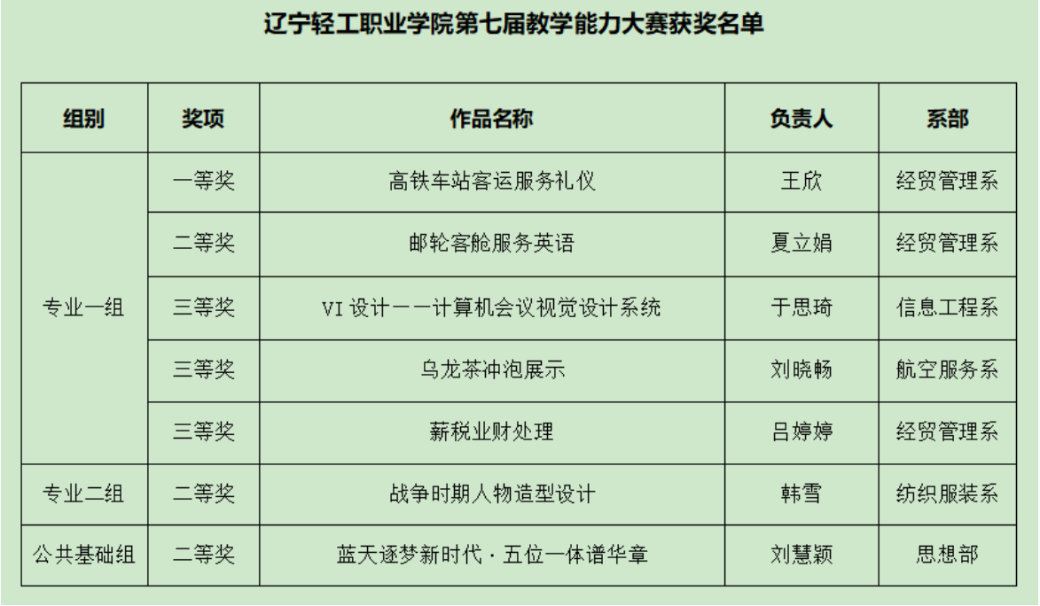 辽宁轻工职业学院第八届教学能力大赛评审结果公示