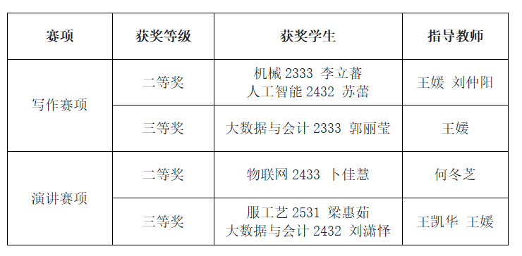 本次比赛设有演讲、写作、短视频三个赛项,我校学子参加的是演讲和写作两个赛项。大赛依托北京外国语大学优质语言资源和外研社专业赛事服务,汇聚了职教专家智慧和国家级媒体力量。比赛以全面落实“岗课赛证”综合育人要求为核心,紧密对接数字经济时代的产业发展需求,致力于选拔培养“会语言、通国家、精技能”的高素质人才